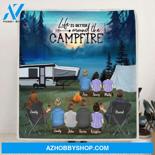 Custom Personalized Camping Blanket Parents with 7 Children Life Is Better Around The Campfire Blanket