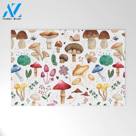 Watercolor forest mushroom illustration and plants Doormat