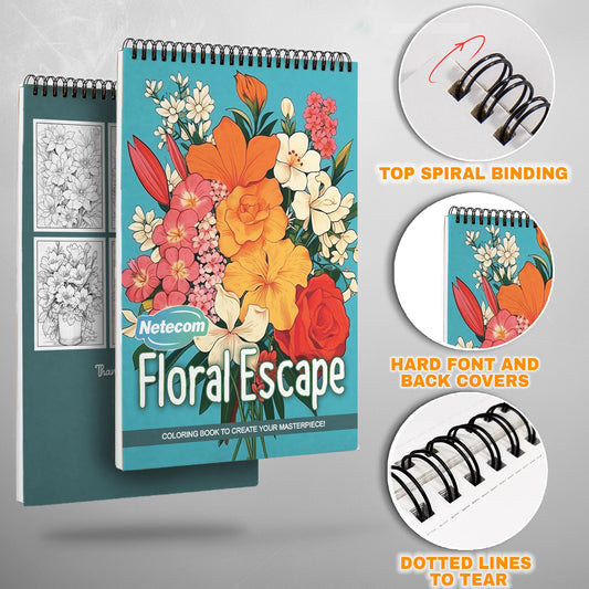 Floral Escape Spiral Bound Coloring Book, Escape into Floral Paradise for a Relaxing Retreat, Ideal for Botanical Lovers and Those Seeking Serene Art