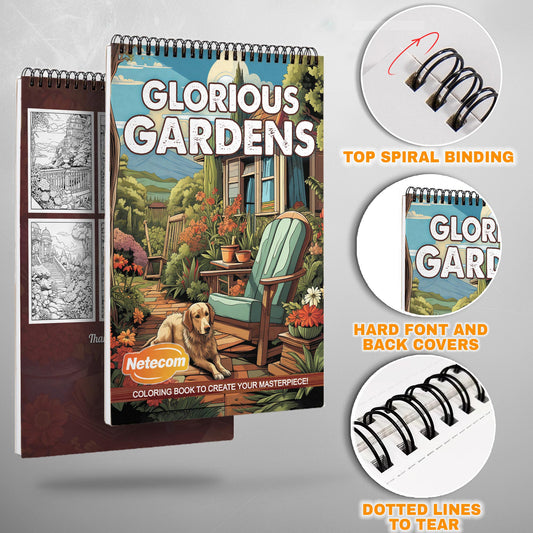 Glorious Gardens Spiral Bound Coloring Book, Lush Garden Scenes for a Relaxing and Beautiful Coloring Experience, Perfect for Nature Lovers and Gardeners