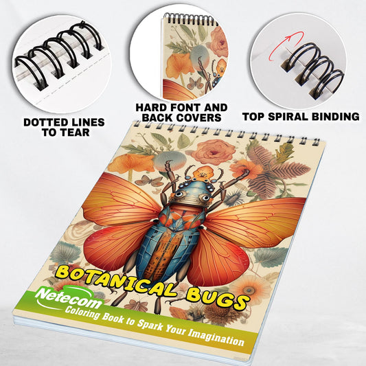 Botanical Bugs Spiral Bound Coloring Book, Explore Nature's Wonders with 30 Botanical Bugs Coloring Pages for Nature Enthusiasts to Color and Learn