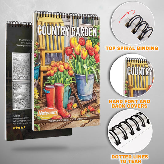 Country Garden Spiral Bound Coloring Book, Idyllic Country Gardens for a Calming and Floral Artistic Retreat, Perfect for Garden Enthusiasts and Nature Fans