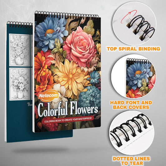 Colorful Flowers Spiral Bound Coloring Book, Vibrant Flower Illustrations for a Joyful Coloring Experience, Perfect for Floral Enthusiasts and Gardeners