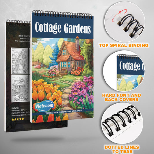 Cottage Gardens Spiral Bound Coloring Book, Charming Cottage Gardens for a Relaxing and Floral Artistic Escape, Great for Garden Lovers and Nature Fans