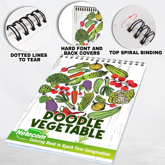 Doodle Vegetable Spiral Bound Coloring Book, Unleash Your Creativity with 30 Whimsical Doodle Vegetable Coloring Pages to Celebrate the Beauty of Nature's Bounty