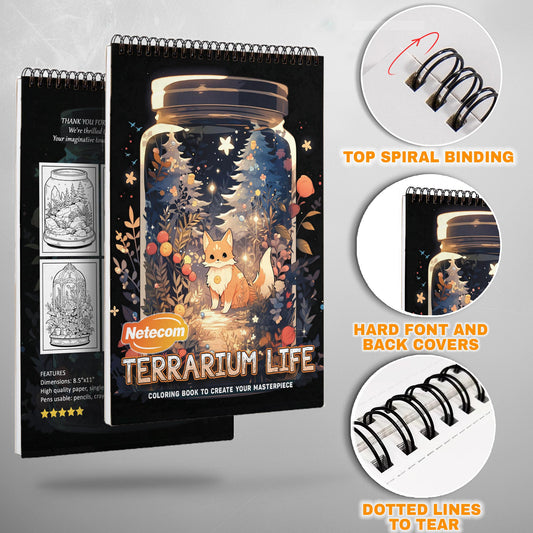 Terrarium Life Spiral Bound Coloring Book, Miniature Ecosystems in Art Form, Great for Nature Lovers and Fans of Botanical and Terrarium Art