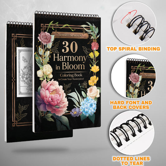 Harmony in Bloom Spiral Bound Coloring Book, Floral Harmony for a Soothing Coloring Experience, Perfect for Flower Lovers and Art Enthusiasts
