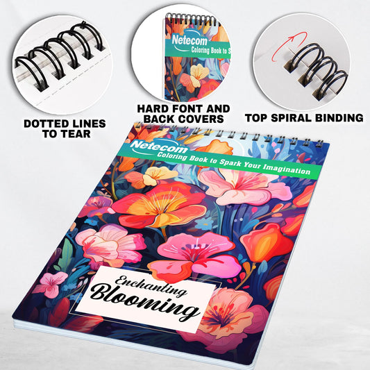 Enchanting Blooming Spiral Bound Coloring Book, Embrace Nature's Beauty with 30 Charming Coloring Pages of Enchanting Flowers