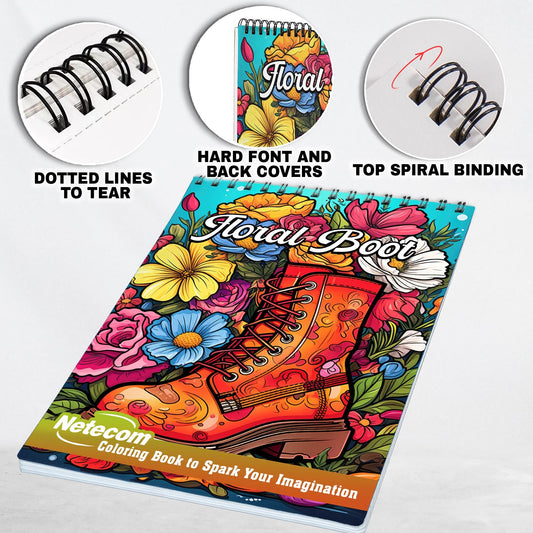 Floral Boot Spiral Bound Coloring Book, Step into the Garden of Creativity with 30 Captivating Coloring Pages of Floral Boots for a Blossoming and Artistic Adventure