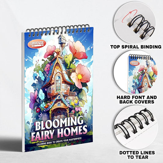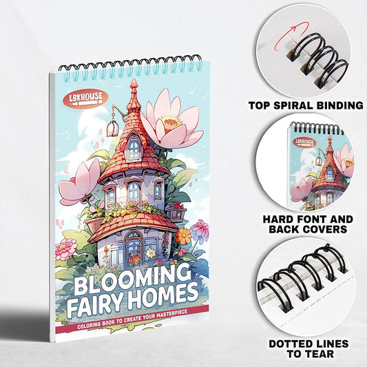 LBKHOUSE Blooming Fairy Homes Coloring Book Spiral Bound for Adults, Premium Cover