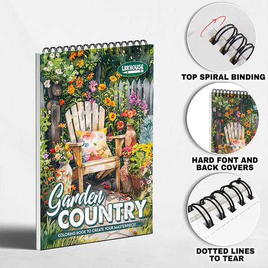 LBKHOUSE Garden Country Coloring Book for Adult, Spiral Bound, Soft Cover