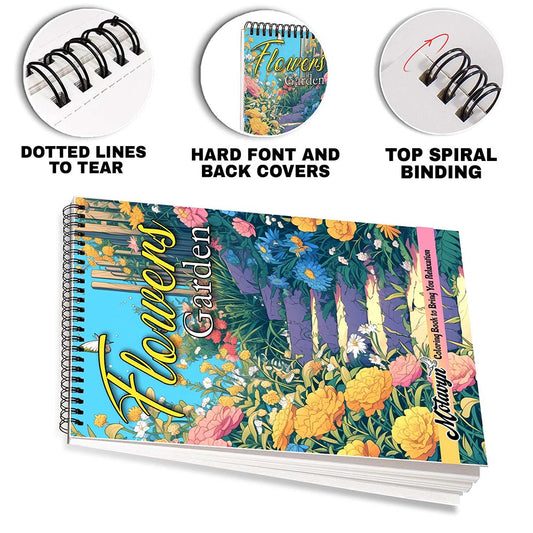 MOTAVYN Flowers Garden Coloring Book for Adults, Spiral Bound, Soft Cover