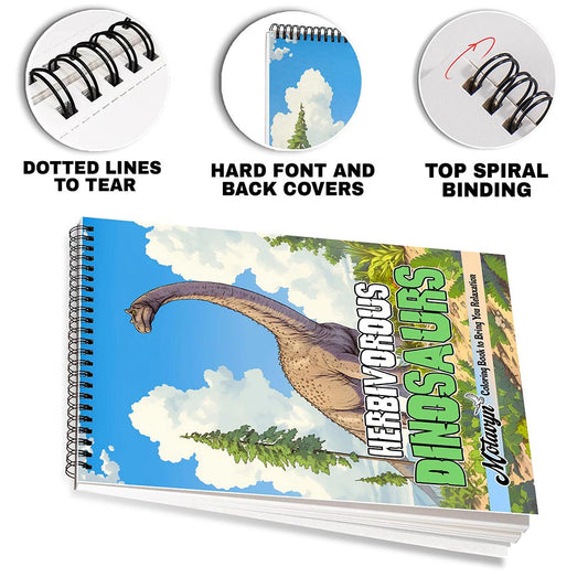 MOTAVYN Herbivorous Dinosaurs Coloring Book for Adults, Spiral Bound, Soft Cover