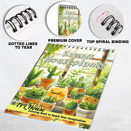 TPLHOUSE Kawaii Houseplants Coloring Book for Adults, Spiral Bound, Soft Cover