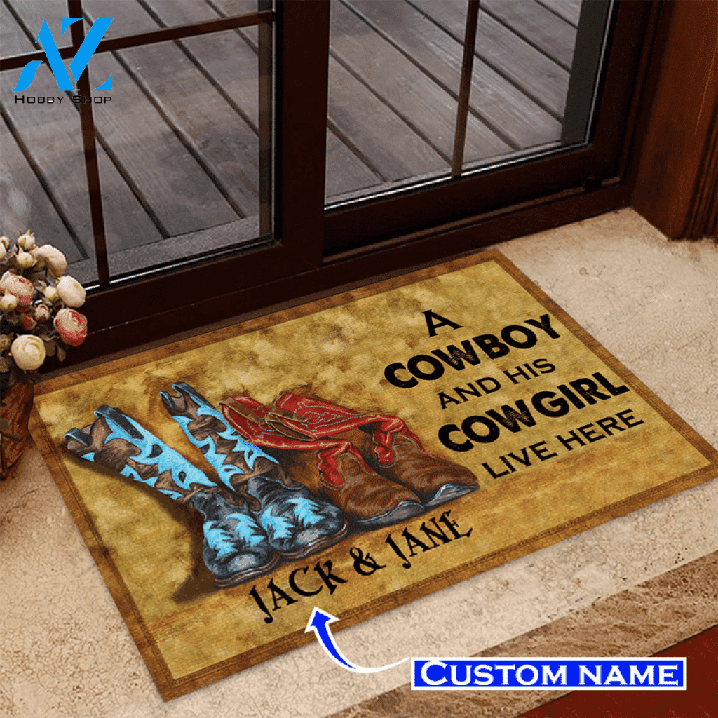 A Cowboy And His Cowgirl Live Here Personalized Doormat