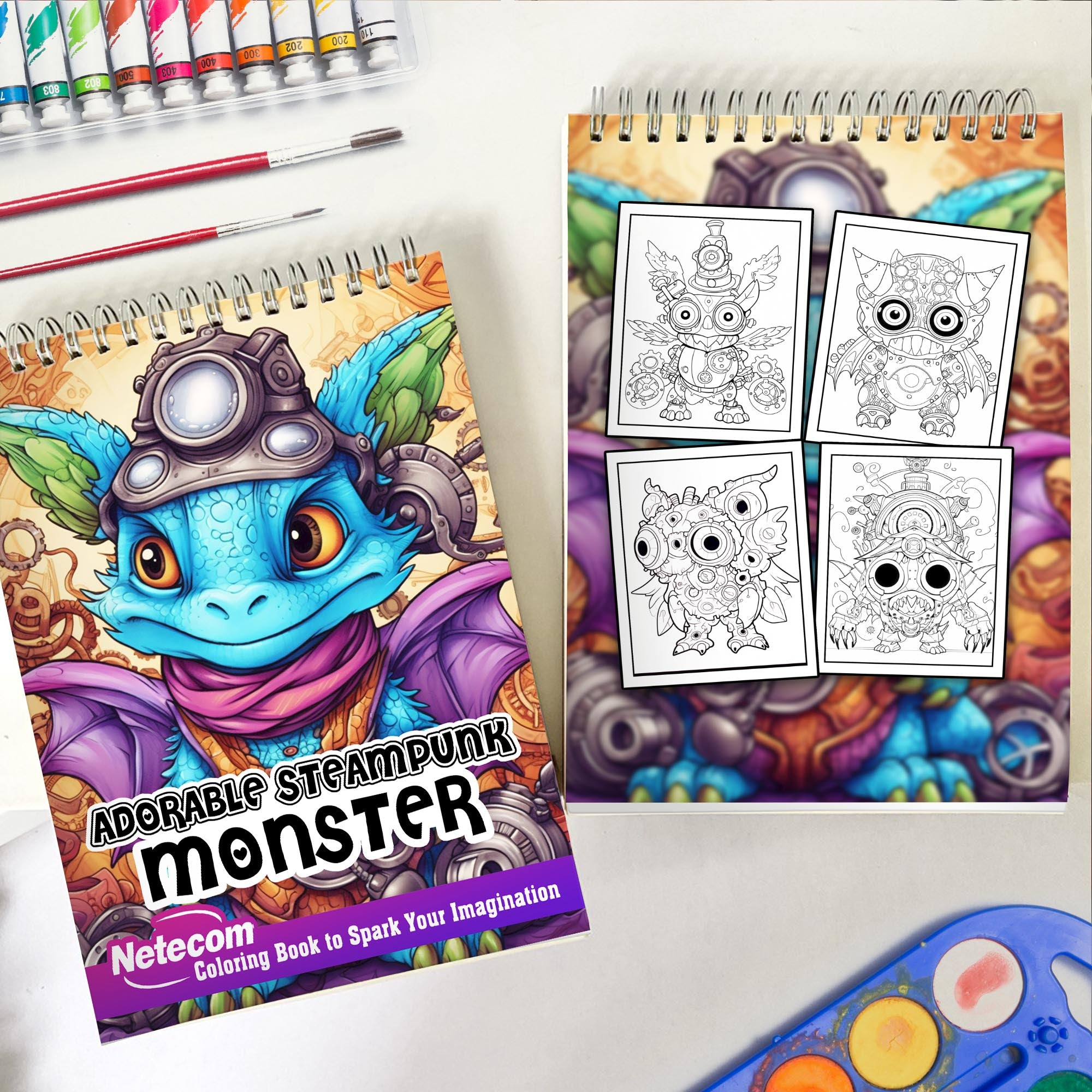 Adorable Steampunk Monster Spiral Bound Coloring Book, Unleash Your Creativity with 30 Coloring Pages, Featuring Charming Steampunk Monsters