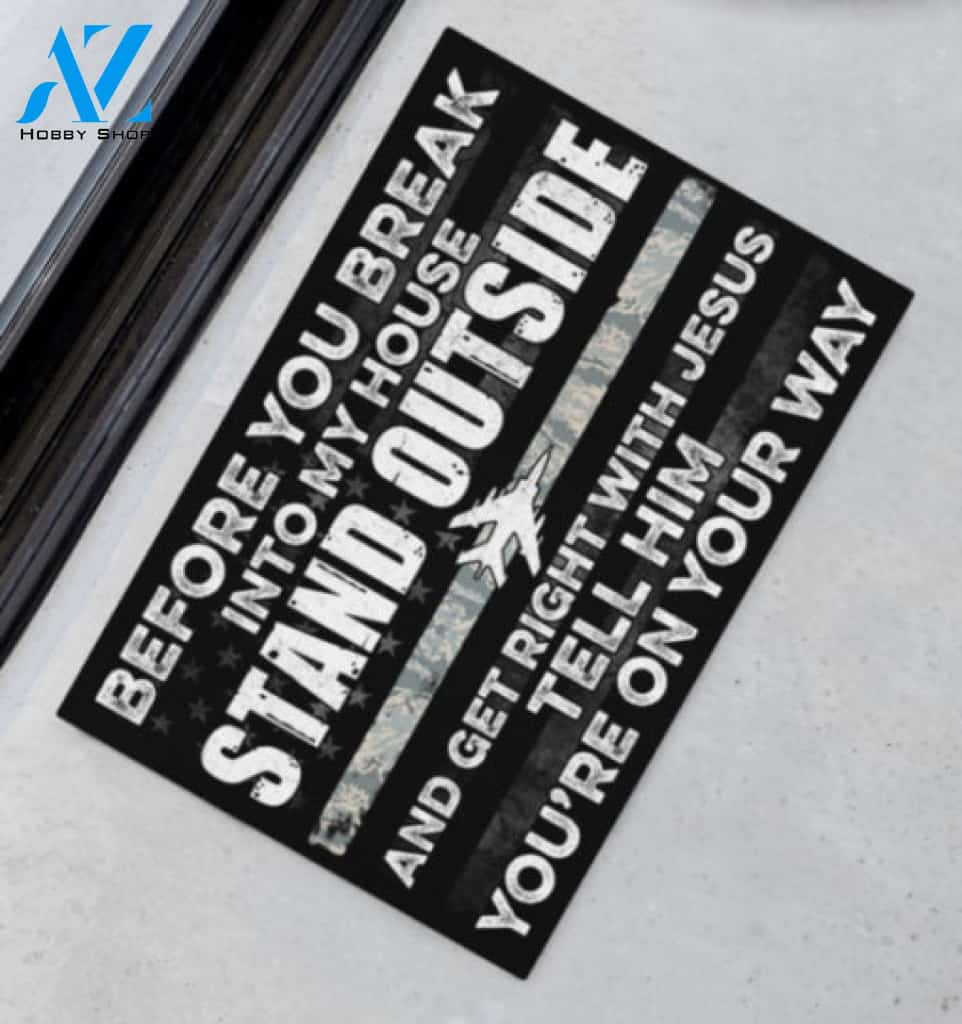 Air Force Before You Break Into My House Stand Outside And Get Right With Jesus Tell Him Youre On The Way Doormat