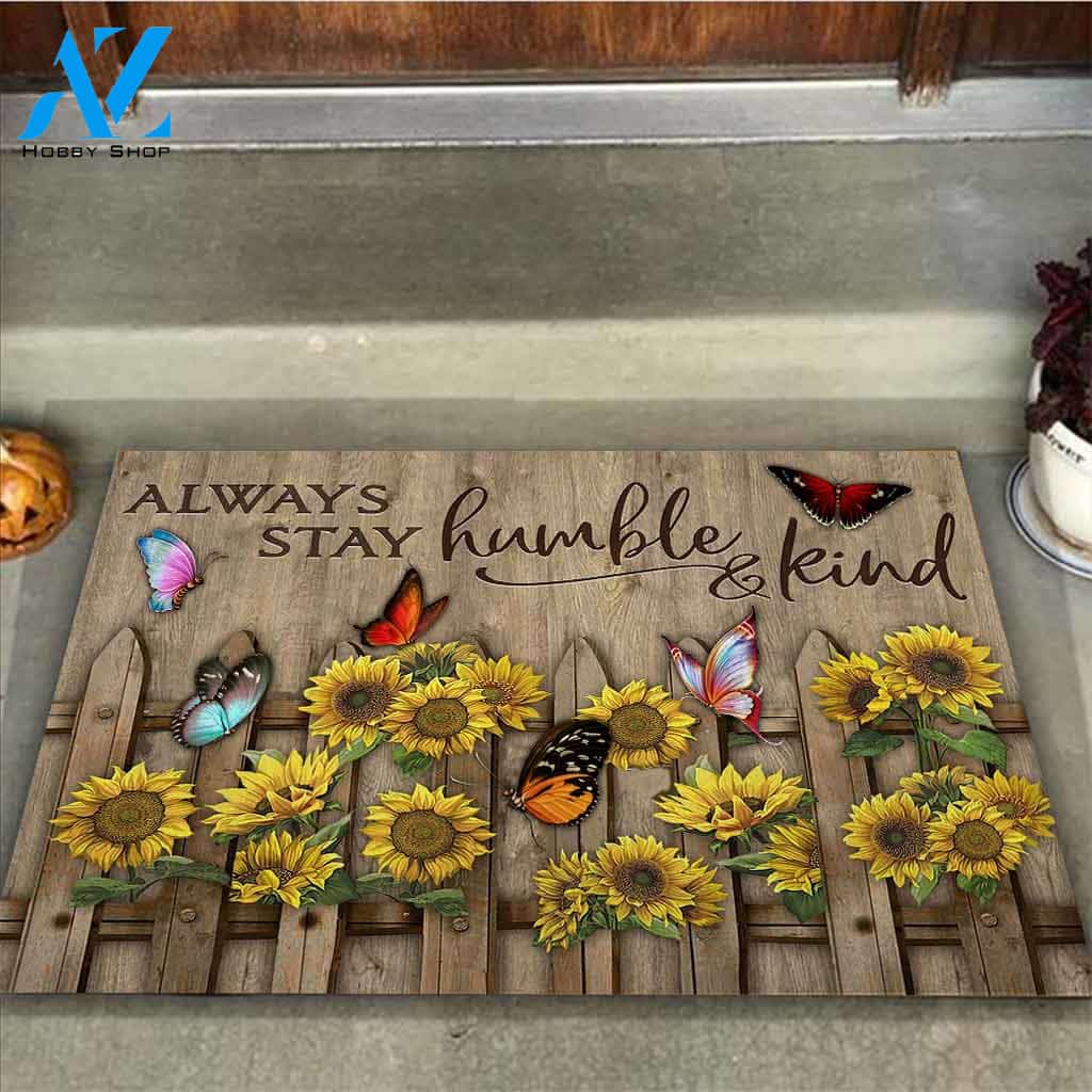 Always Stay Humble And Kind Sunflower Butterfly Indoor And Outdoor Doormat