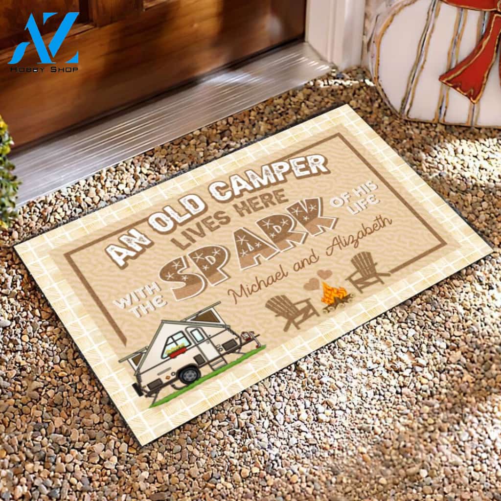 An Old Camper Lives Here With The Spark Of His Life, Door Mat