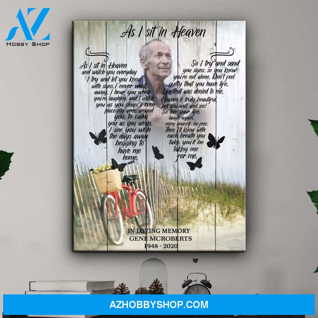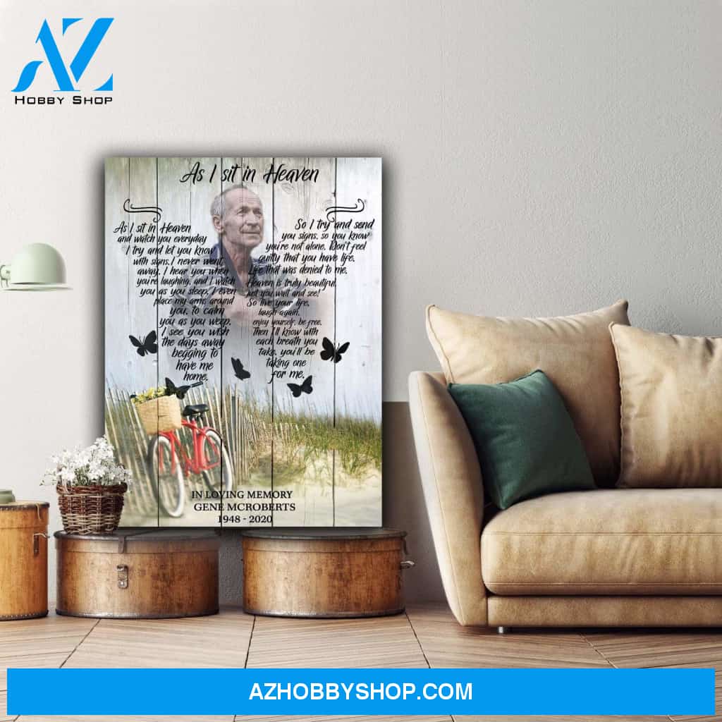 As I Sit In Heaven Bicycle Background, Personalized Photo Memorial Canvas, Canvas Wall Art Gift For Family Gift for Remembrance