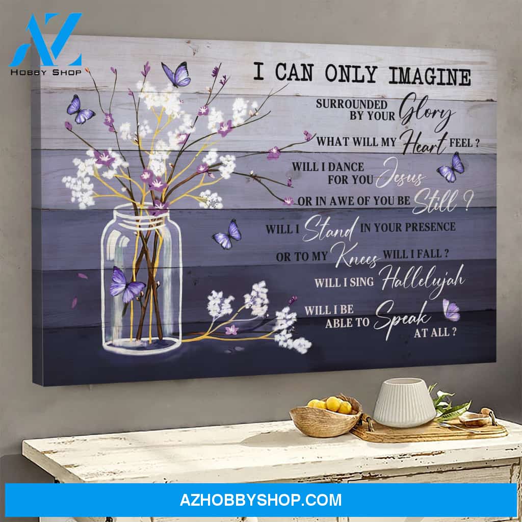 Baby flower with butterfly on the purple background - I can only imagine - Jesus Landscape Canvas Prints