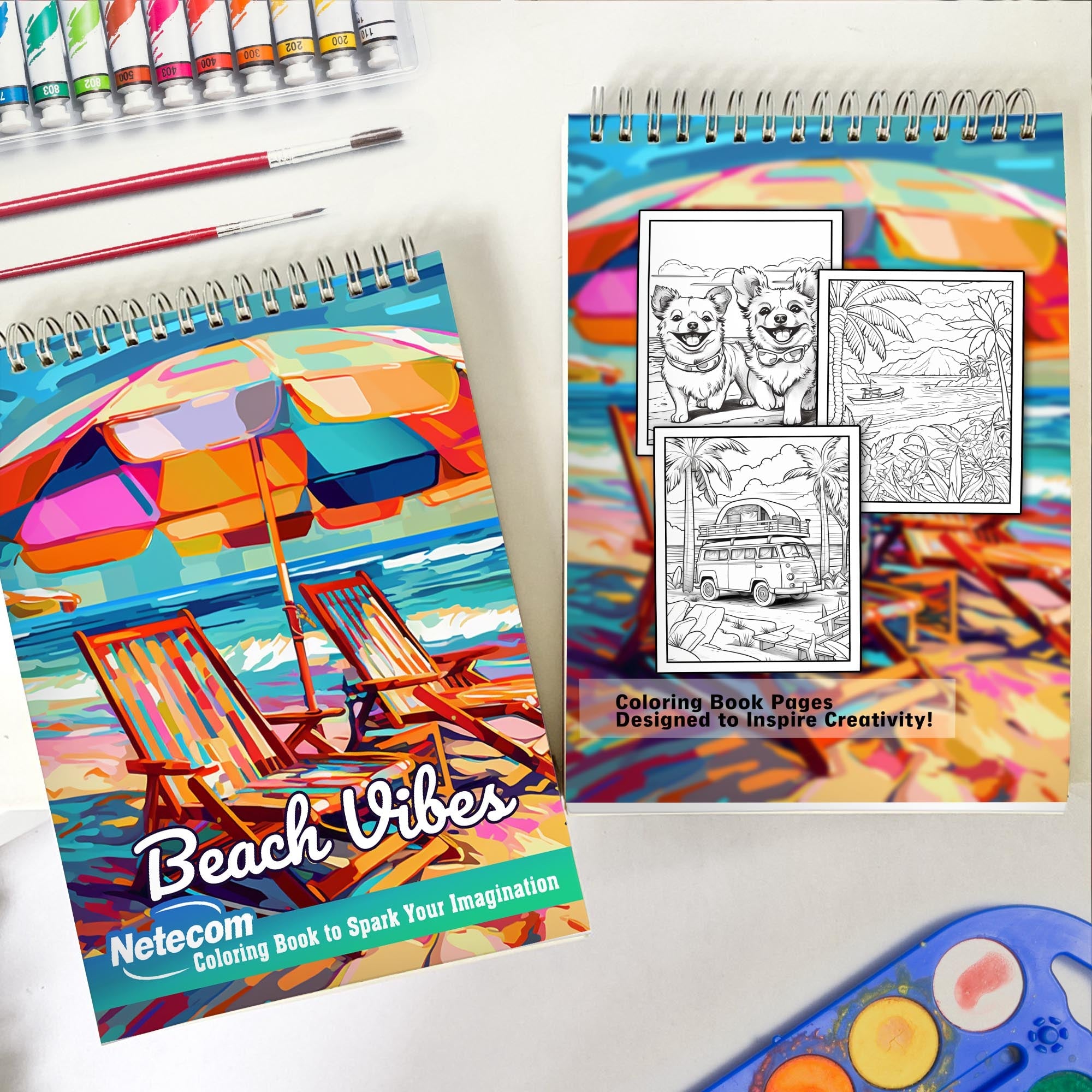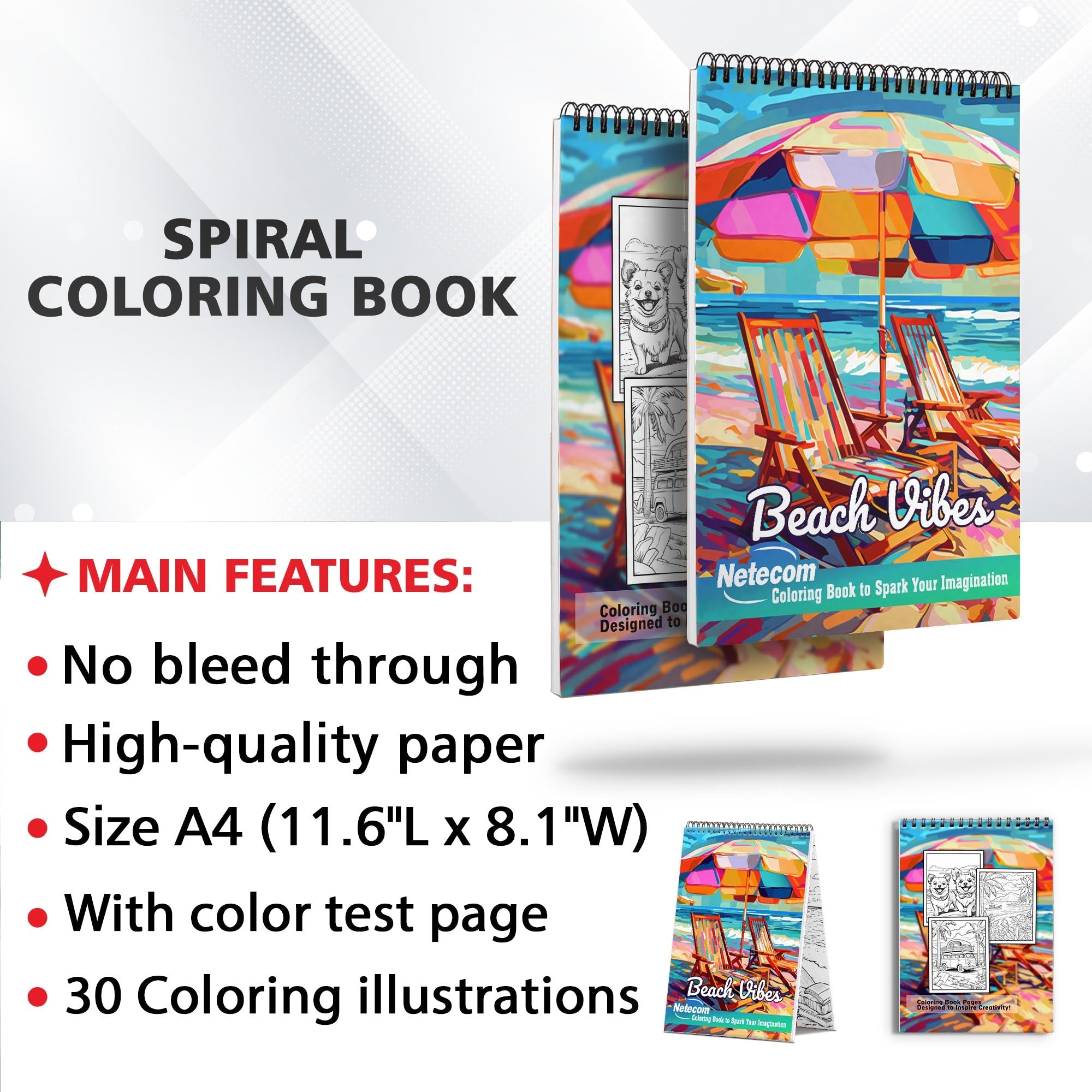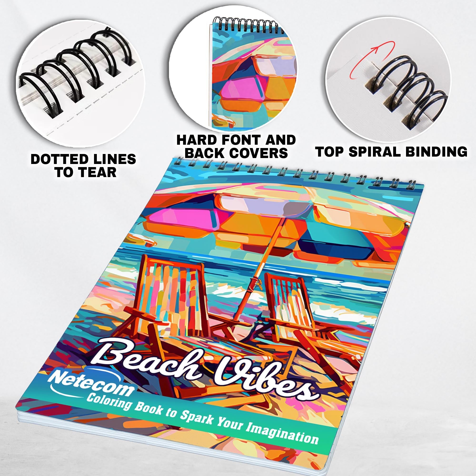 Beach Vibes Spiral Bound Coloring Book, Ocean Themed Coloring Book for Adults for Relaxation and Stress Relief