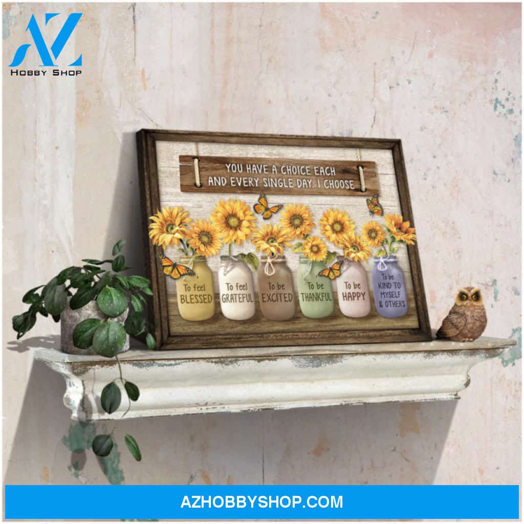 Beautiful Farmhouse Wall Decor Sunflower Art Canvas Prints Butterfly Today I Choose Motivational Quote Ohcanvas