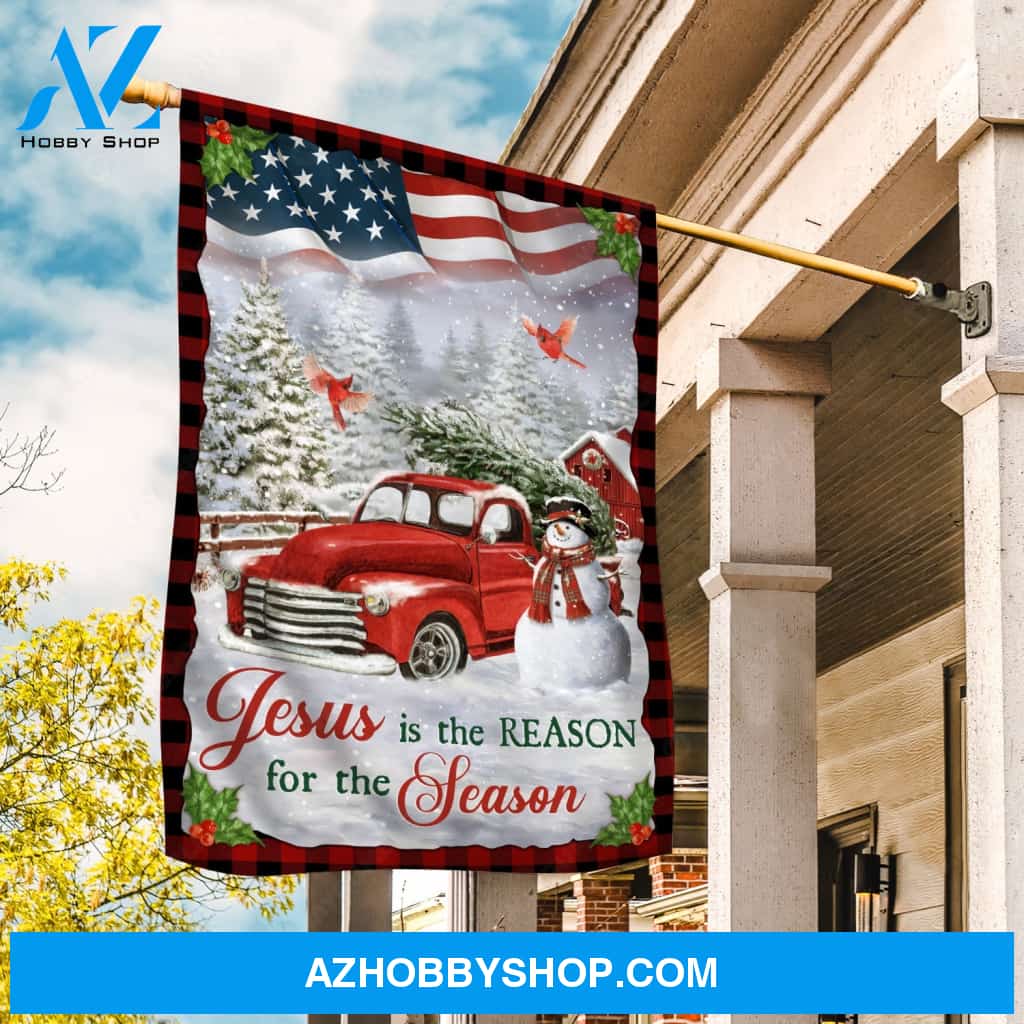 Beautiful ladybug car, Little snowman, Red cardinal, Jesus is the reason for the season - Jesus Flag