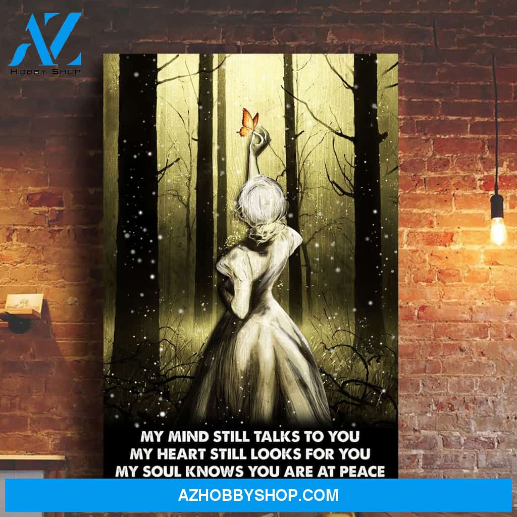 Beautiful woman holding butterfly - My mind still talks to you - Heaven Portrait Canvas Prints - Wall Art