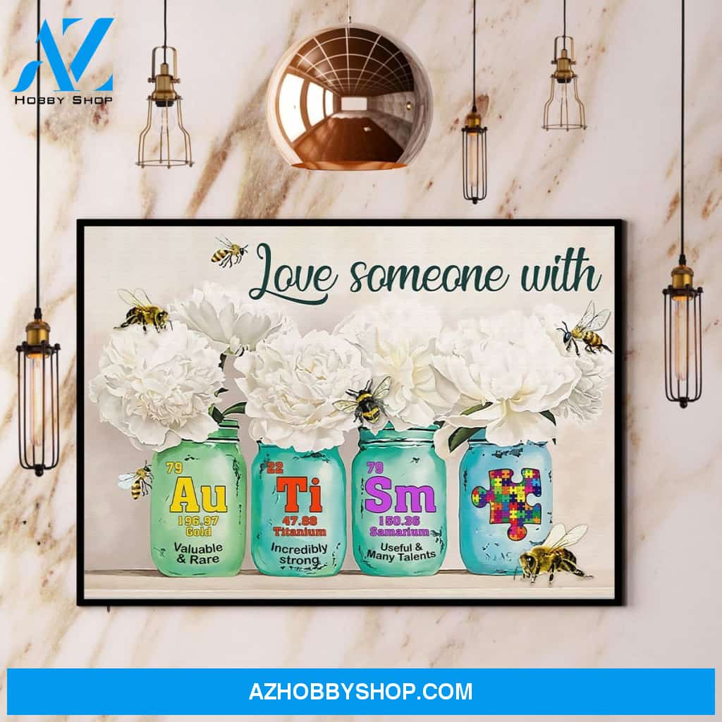 Bee Flower Love Someone With Autism Awareness Warrior Canvas And Poster