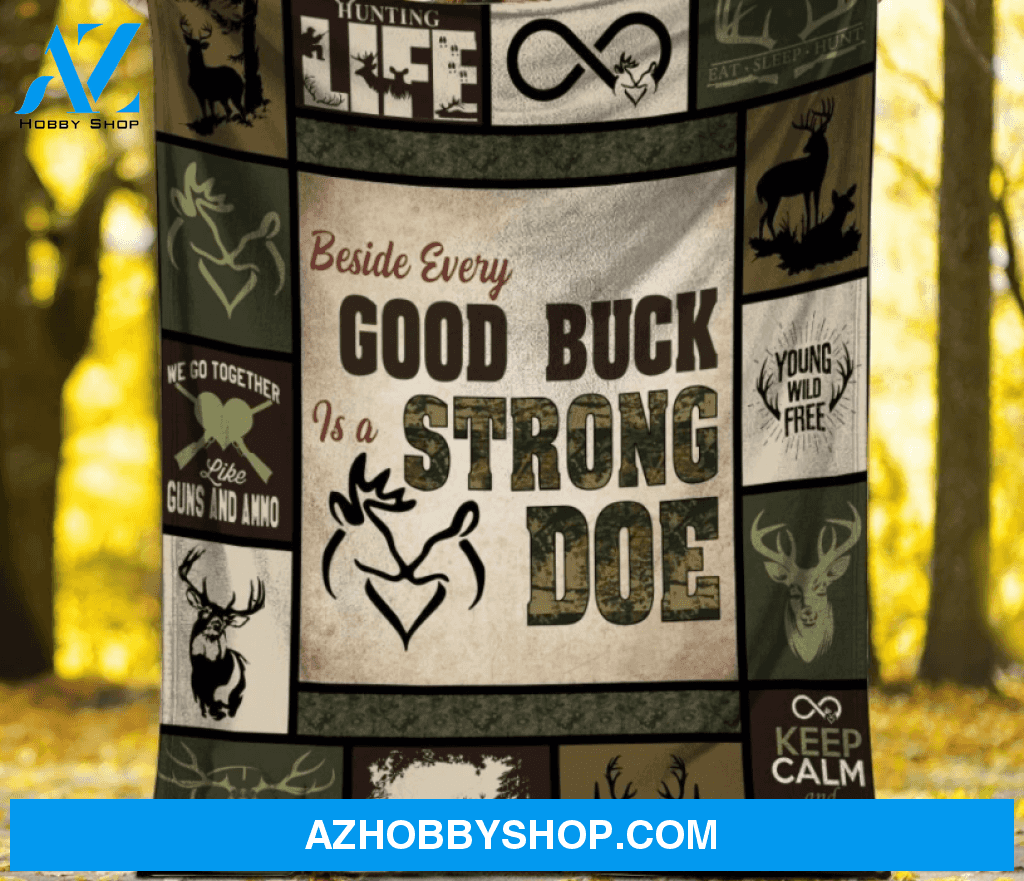 Beside Every Good Buck Is A Strong Doe Hunting Fleece Blanket Gift For Hunting Lover