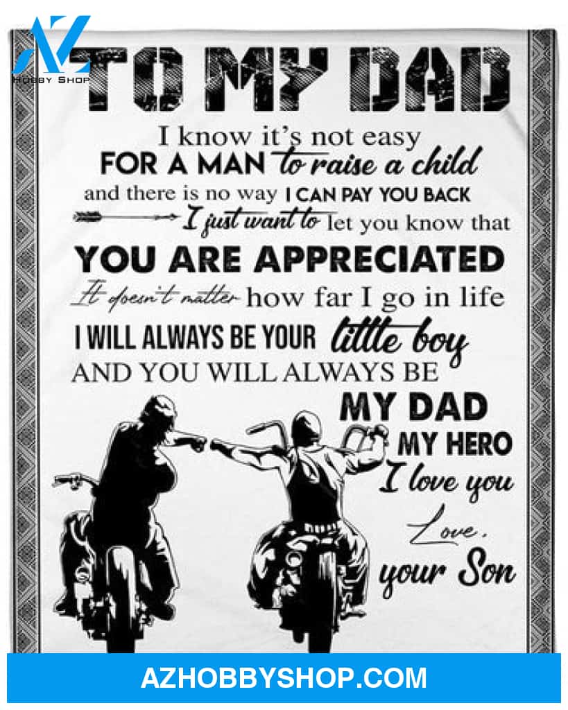 Gift For Father Blanket, Biker To My Dad I Know It's Not Easy For A Man To Raise A Child Gift From Son Fleece Blanket
