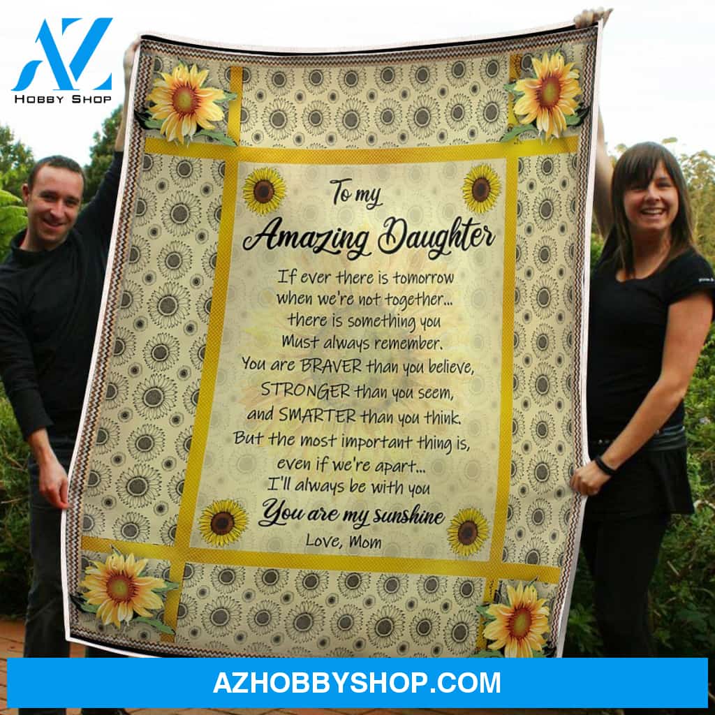 Blanket Mothers Day Gifts To My Daughter Sunflower You Are Braver Stronger Smarter Fleece Blanket Unique Gifts