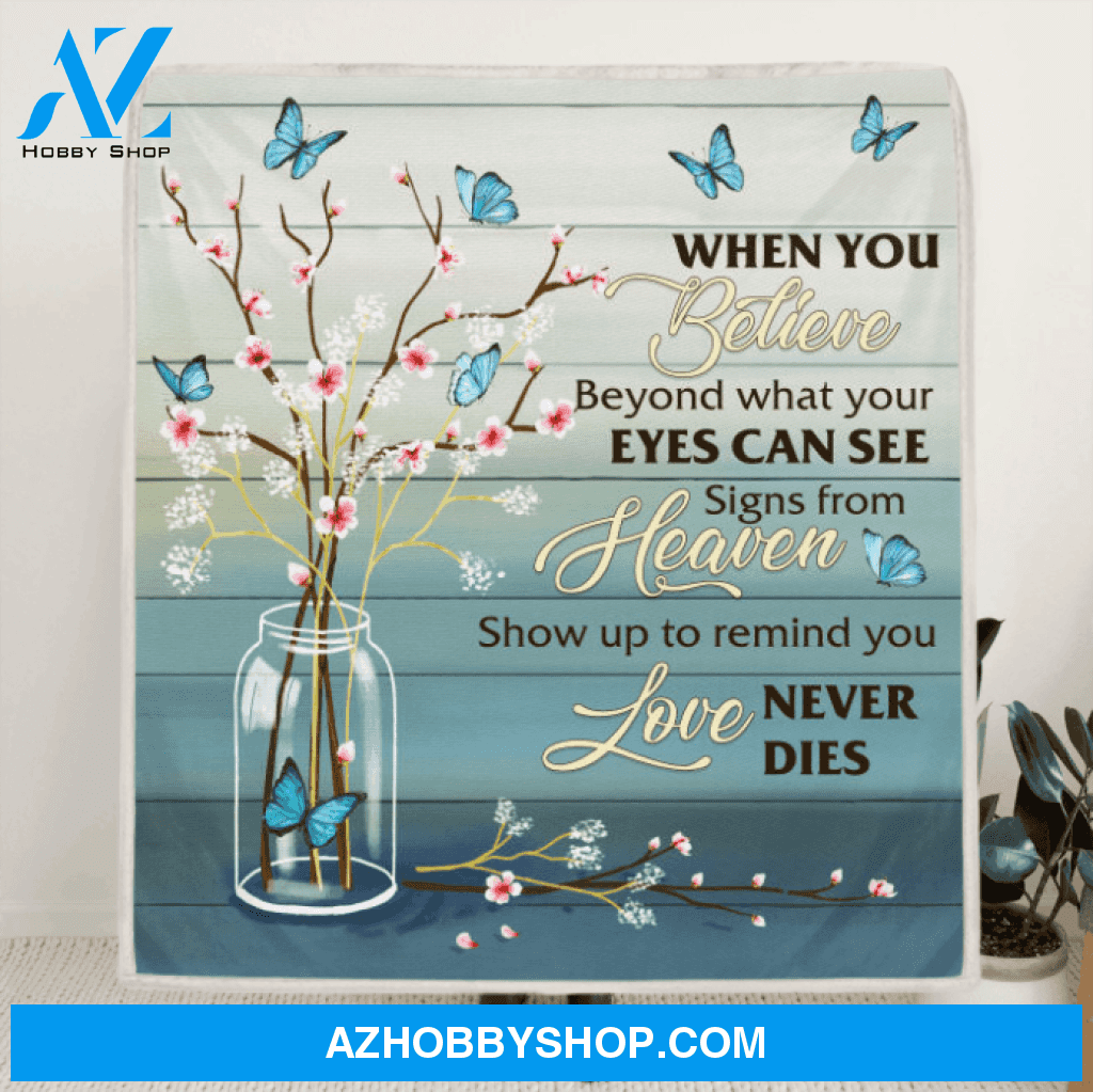 Blue Butterfly When You Believe Memorial Blanket Gift For Friend Family