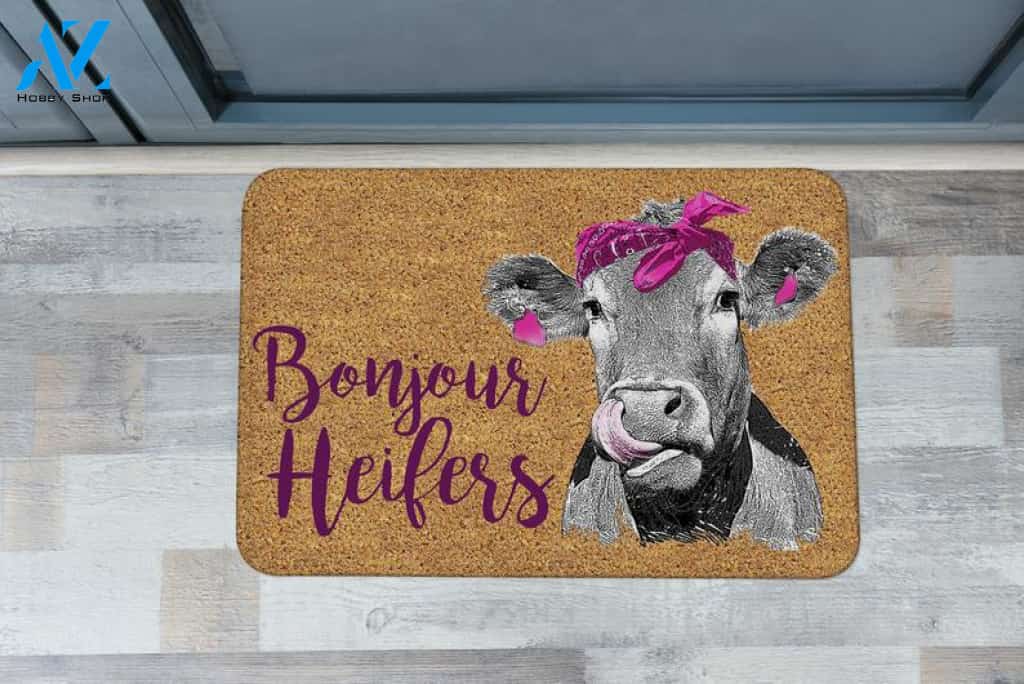 Bonjour Heifers Doormat Farm Cow Personalized Doormat