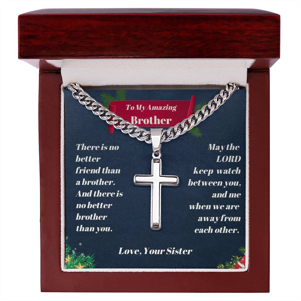 Brother - Christmas-  Personalized Cross Necklace on Cuban Chain