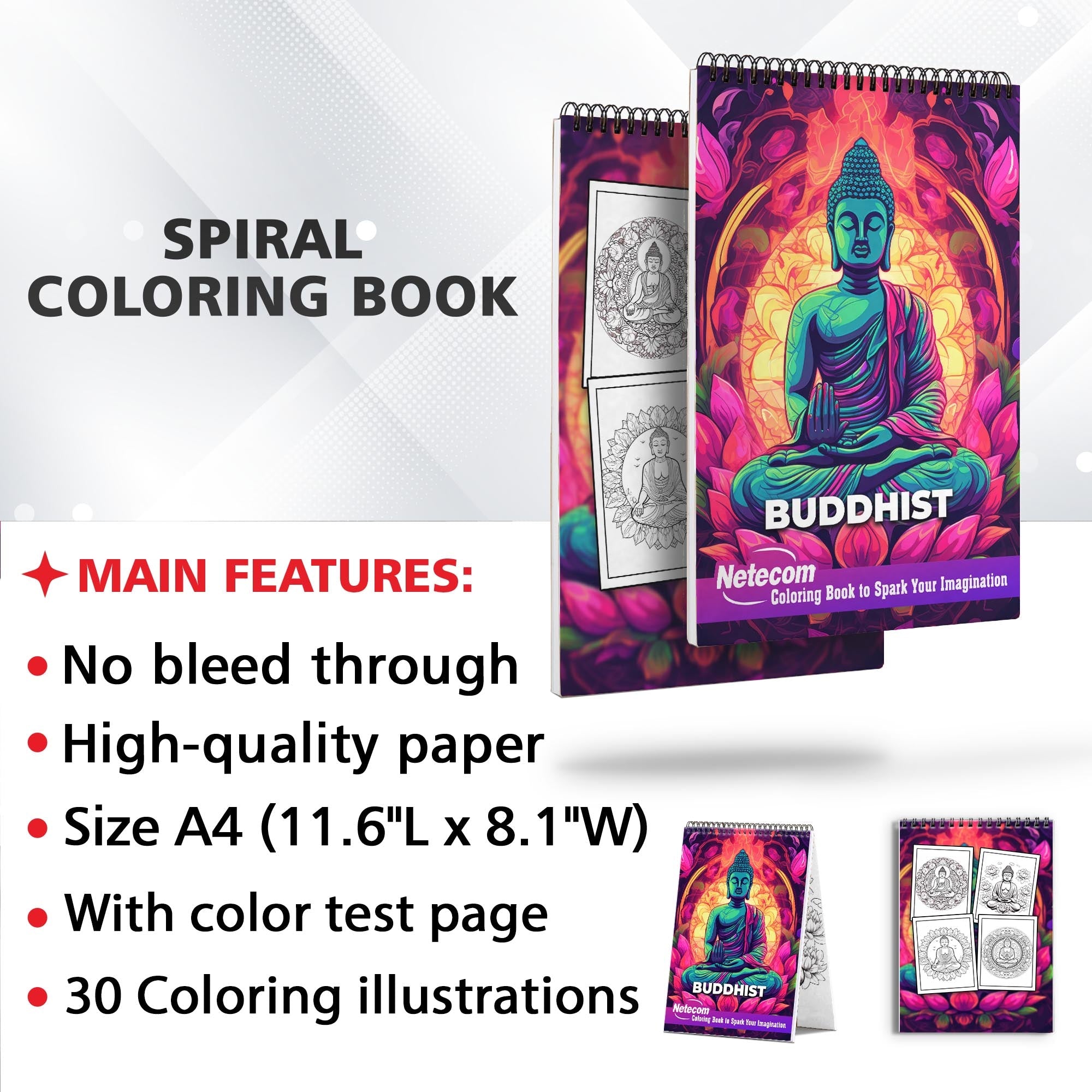 Buddhist Spiral Bound Coloring Book, Find Harmony in Coloring: 30 Meditative Pages Drawing Inspiration from Buddhist Philosophy