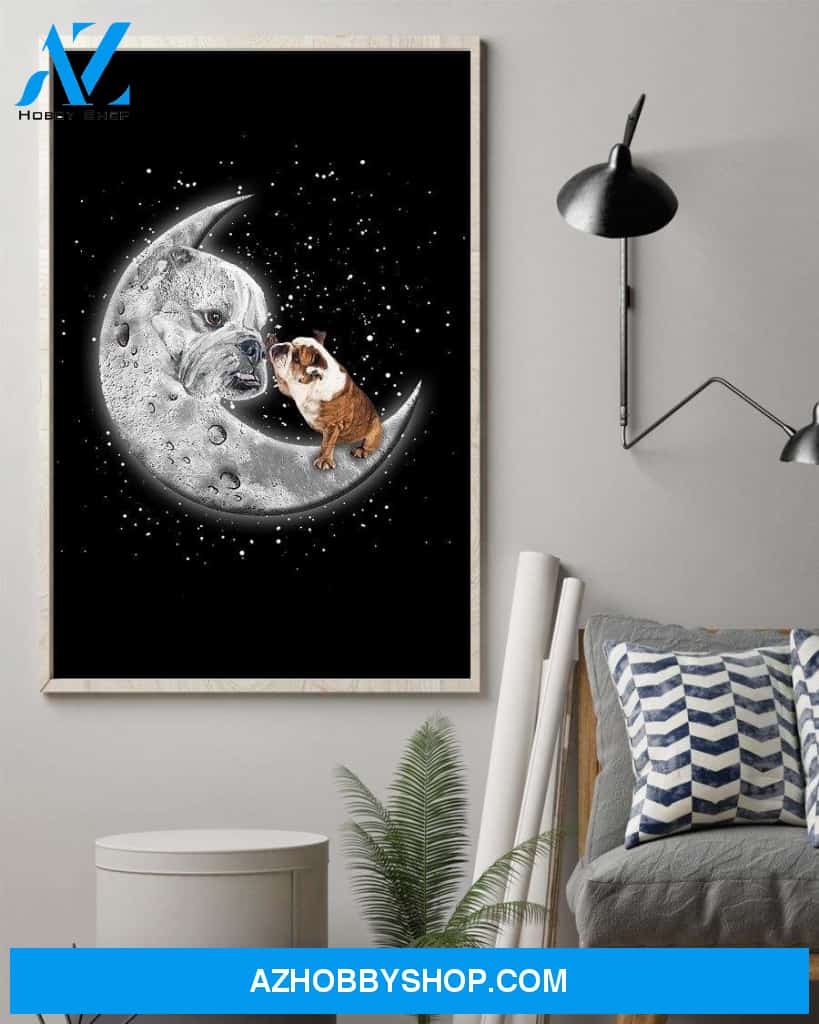Bulldog with moon love to moom poster