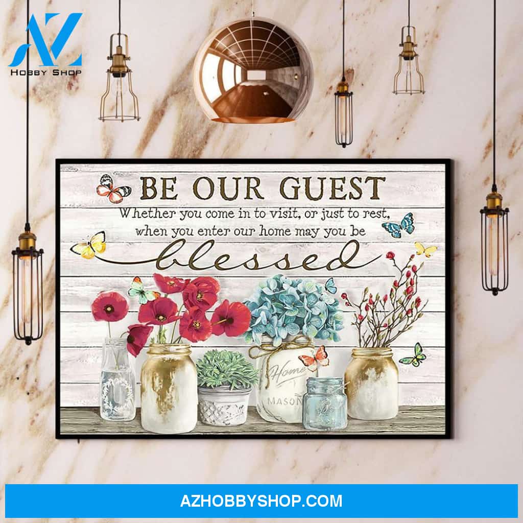 Butterfly Flower Be Our Guest Canvas And Poster, Wall Decor Visual Art