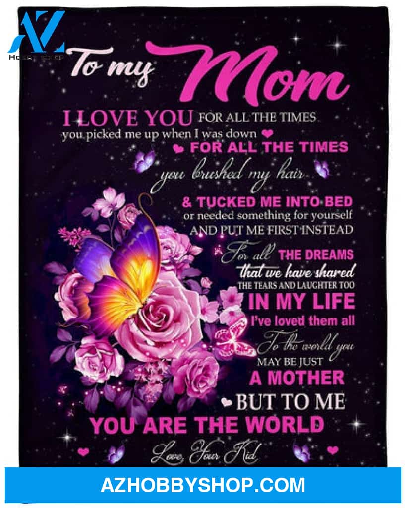 Gift For Mother Blanket, Butterfly Roses To My Mom I Love You For All The Times Gift From Kid Fleece Blanket