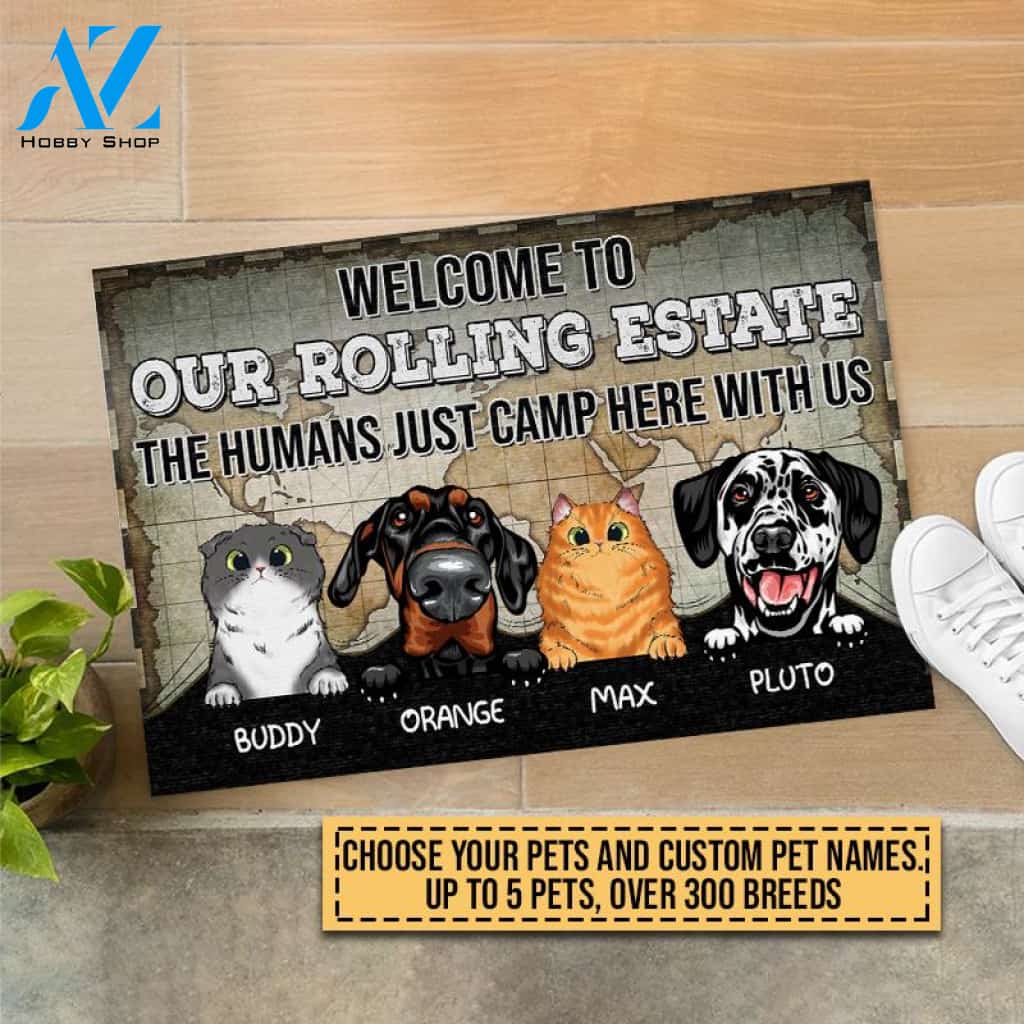 Camping Dog, Cat, Pet, Camper, s, Welcome Rolling Estate Custom Doormat