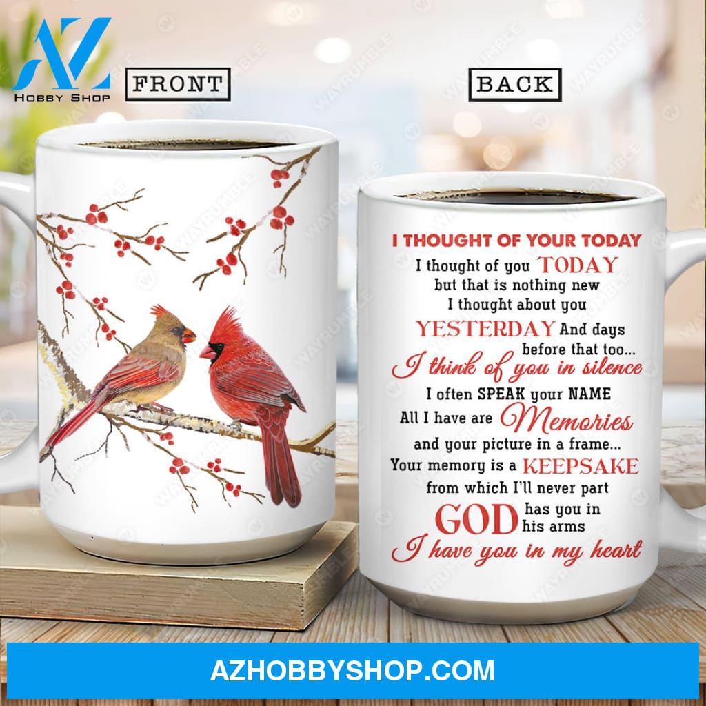 Cardinal couple, Cranberry branch, Good memories, I thought of you today - Heaven White Mug