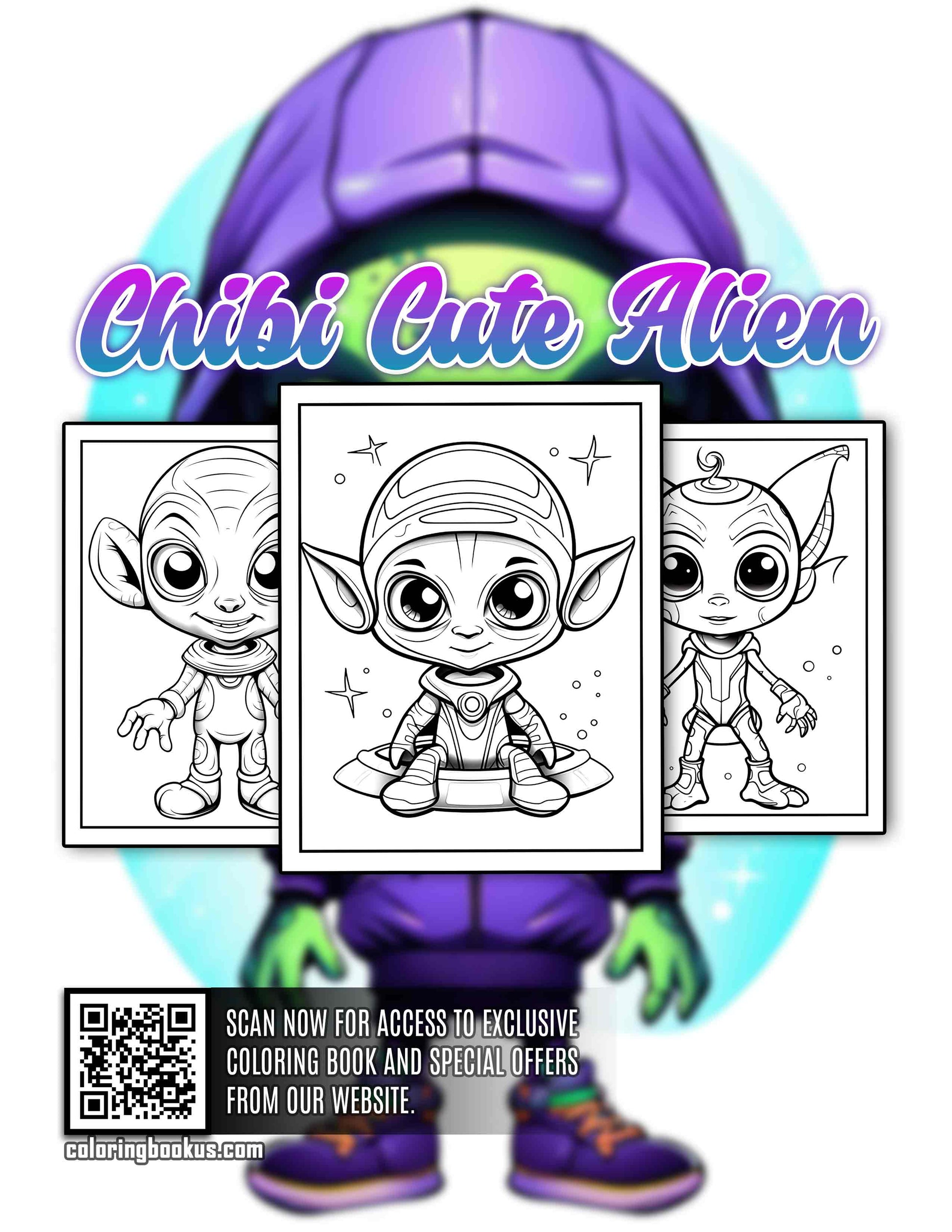 Chibi Cute Alien 30 Pages Printable Coloring Book