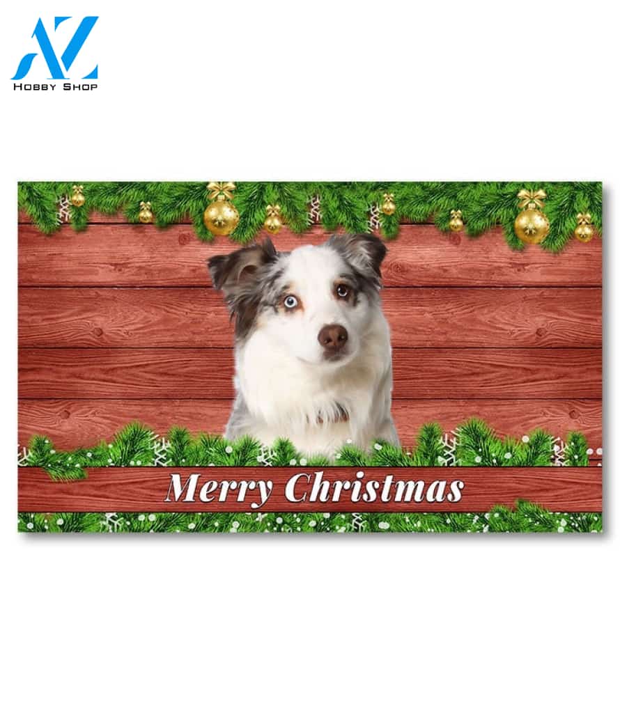 Christmas Barnwood Blue Merle Australian Shepherd Doormat