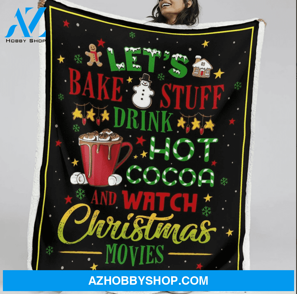 Christmas Let's Bake Stuff Drink Hot Cocoa Fleece Blanket Gift For Family Birthday Christmas Friends Couple Gift