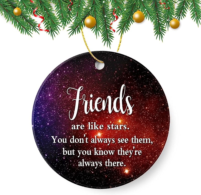 Christmas Tree Ornament -Friends Are Like Stars Gift For Best Friends Holiday Keepsake Round Ceramic Christmas Ornament Decoration 3 Inch Xmas/ Birthday/Graduation Present