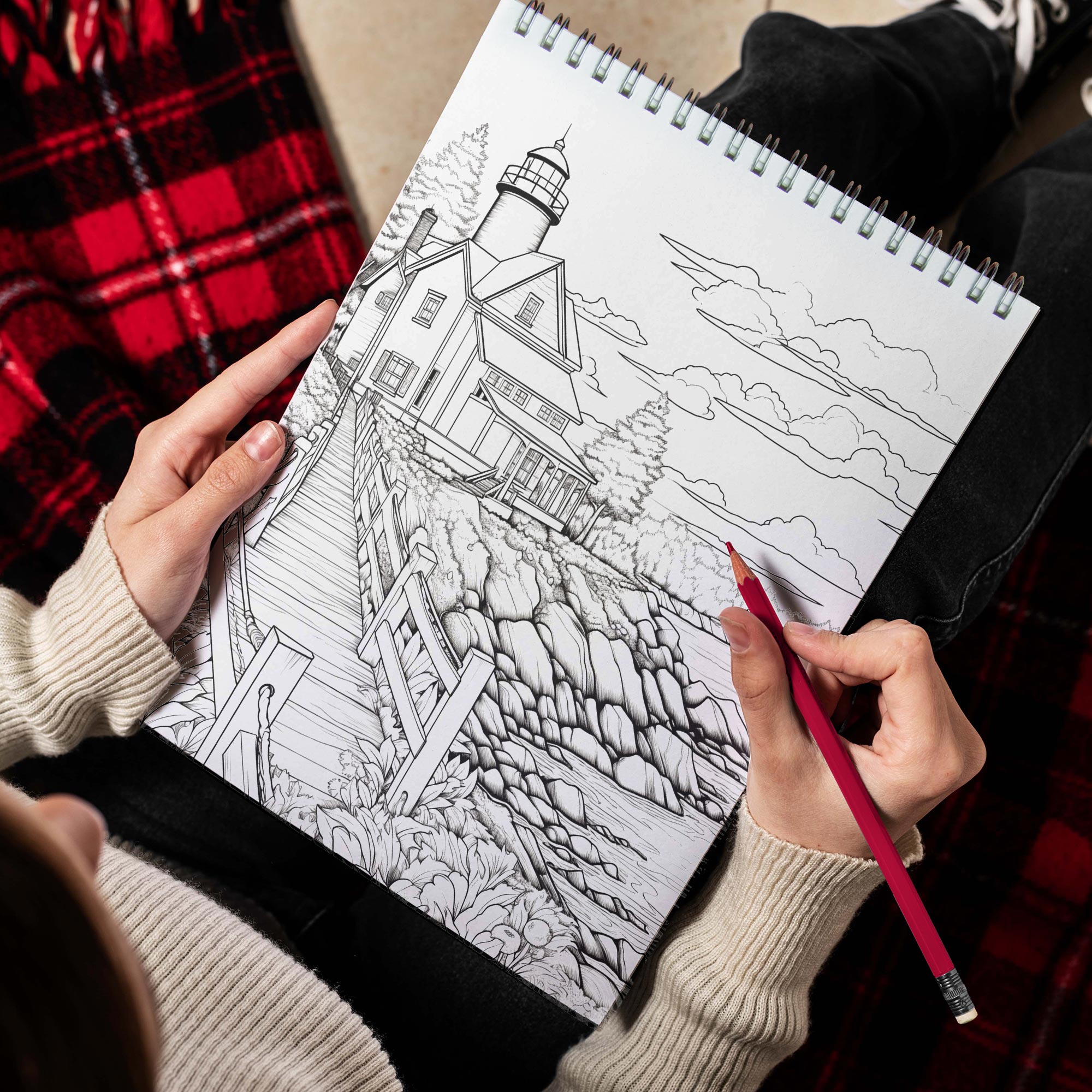 Coloring Maine Spiral Bound Coloring Book, Immerse Yourself in 30 Captivating Coloring Pages Showcasing the Unique Culture and Iconic Landmarks of Maine