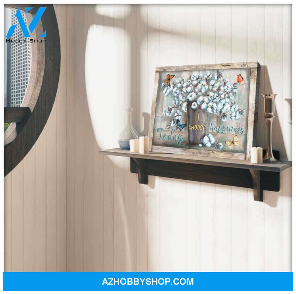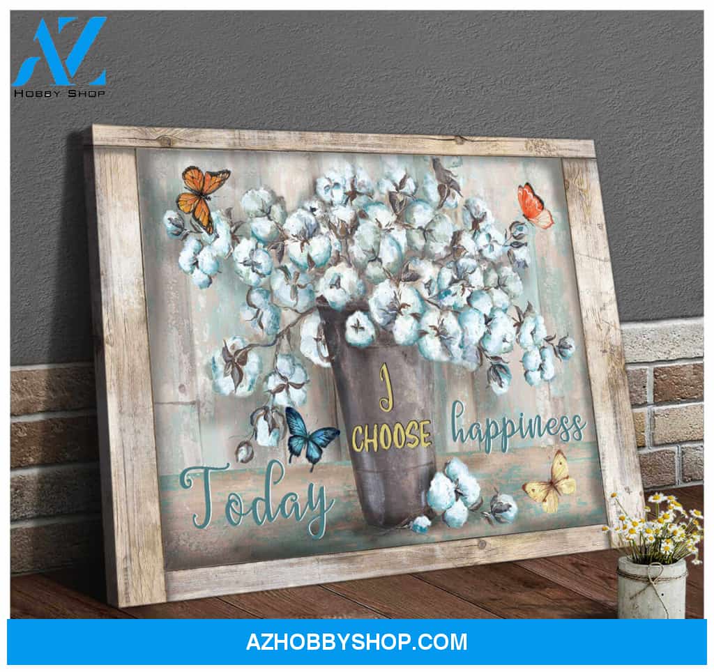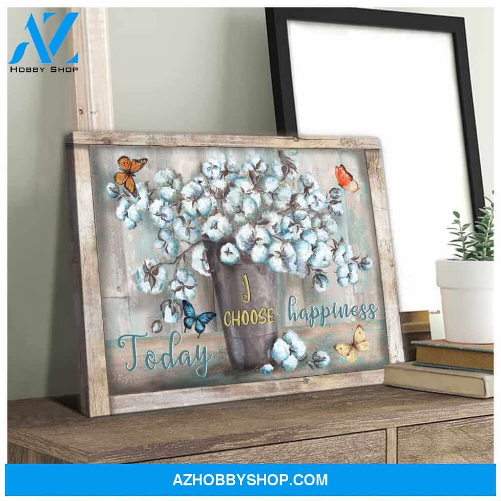 Cotton Flowers and Butterfly Canvas Today I choose Happiness Wall Art Decor