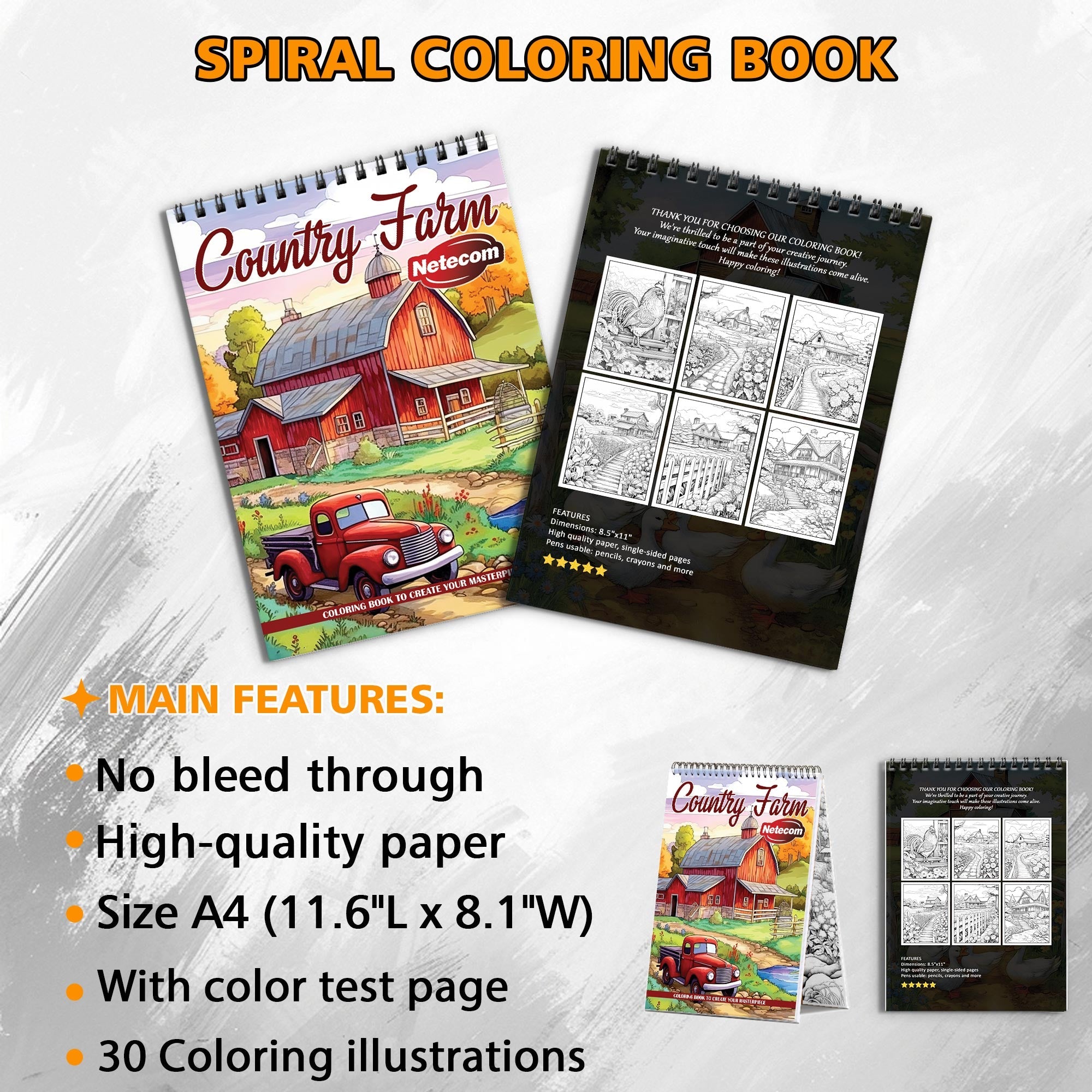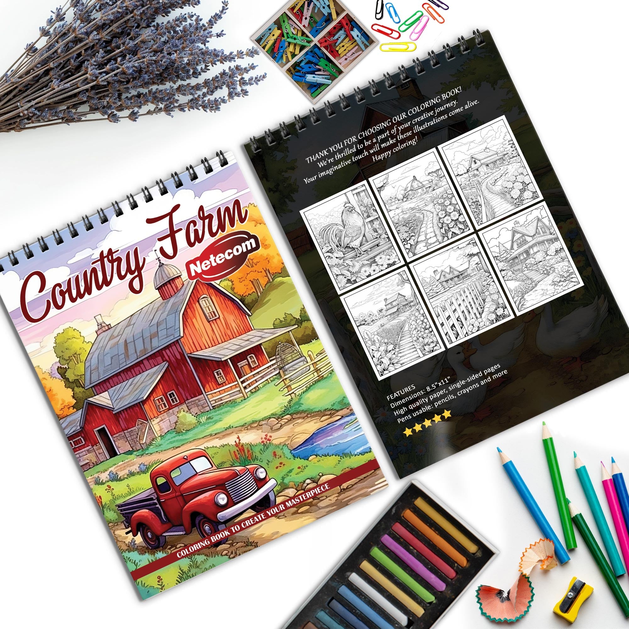 Country Farm Spiral Bound Coloring Book, Rustic Farm Scenes for a Relaxing Country Escape, Ideal for Those Seeking Rural Charm and Peaceful Art