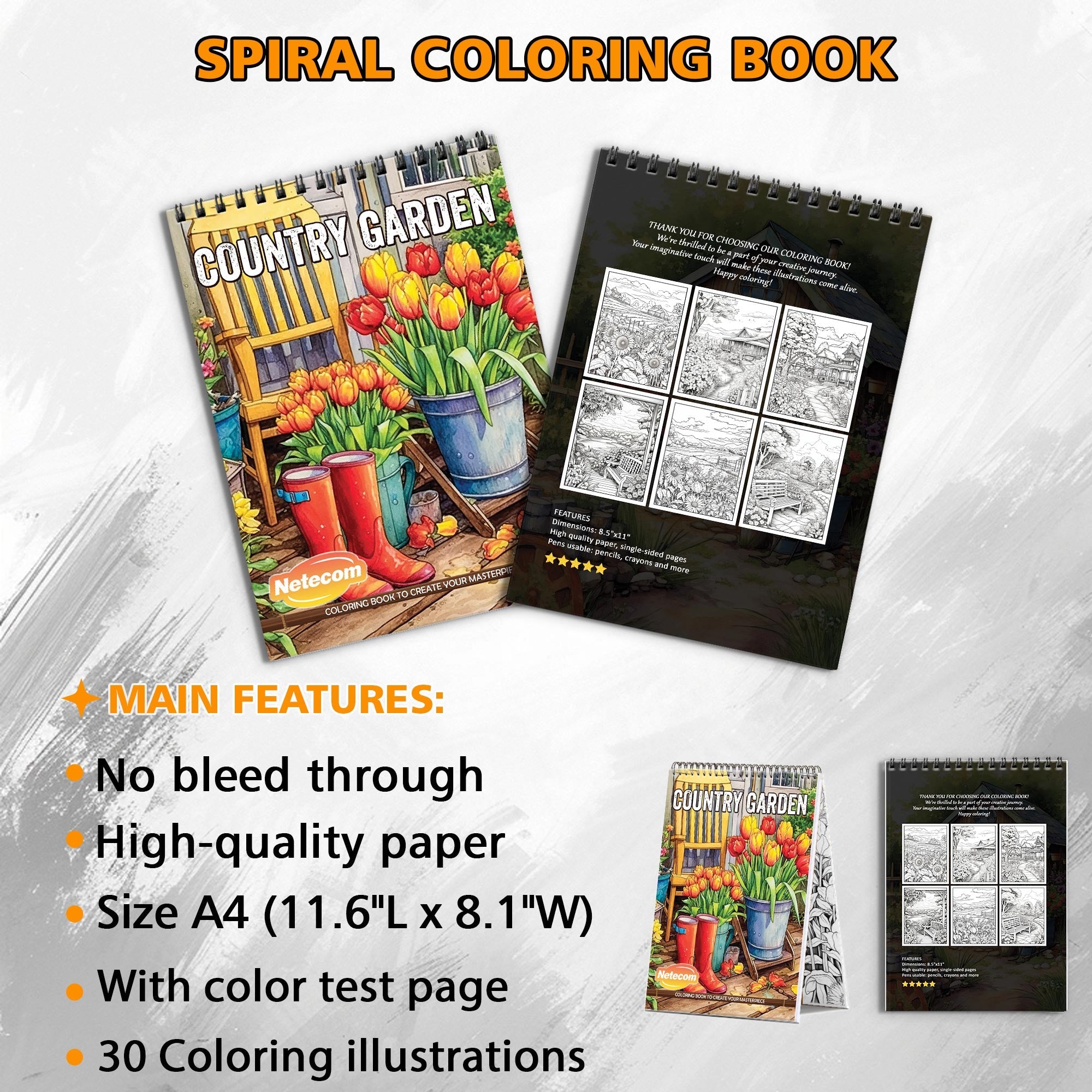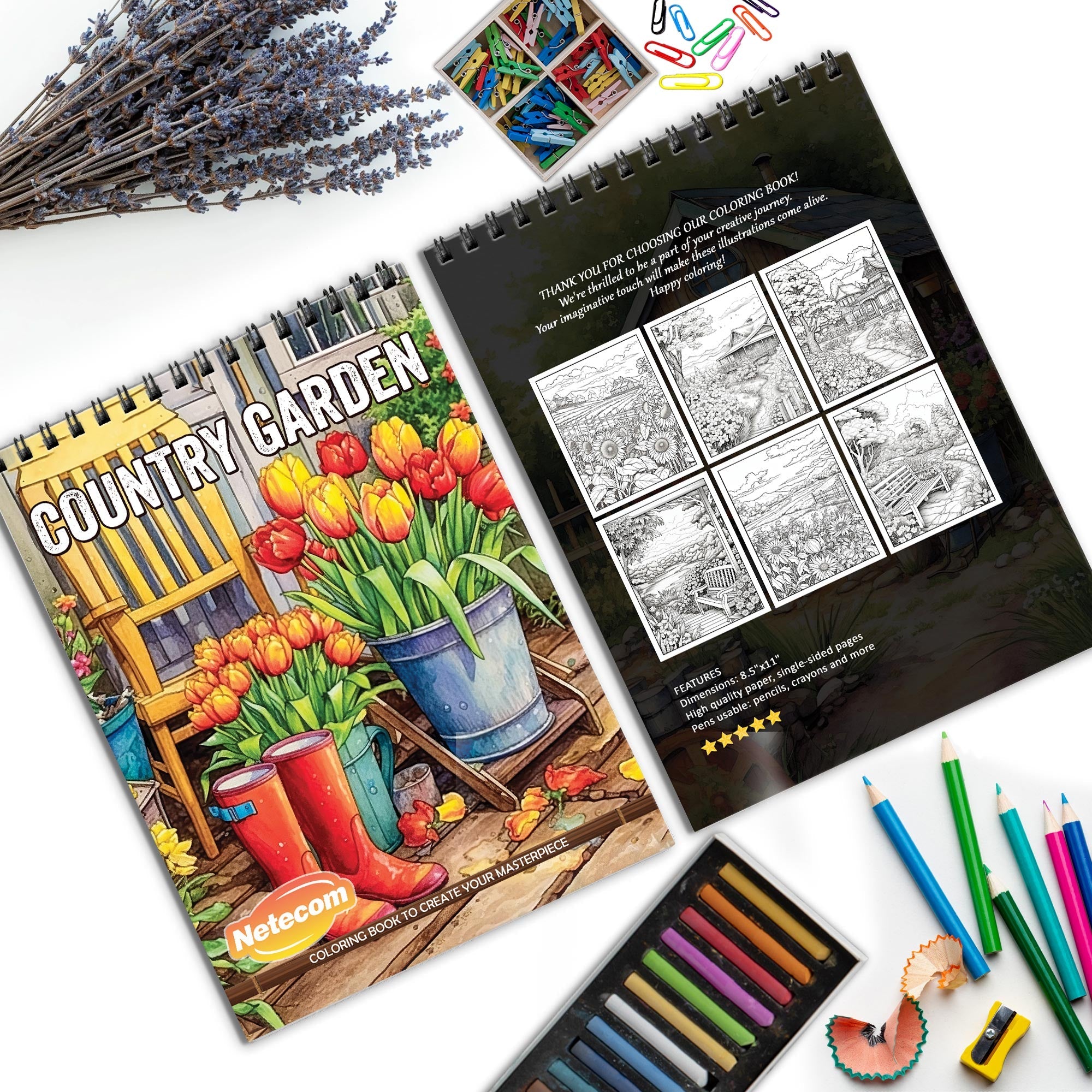 Country Garden Spiral Bound Coloring Book, Idyllic Country Gardens for a Calming and Floral Artistic Retreat, Perfect for Garden Enthusiasts and Nature Fans